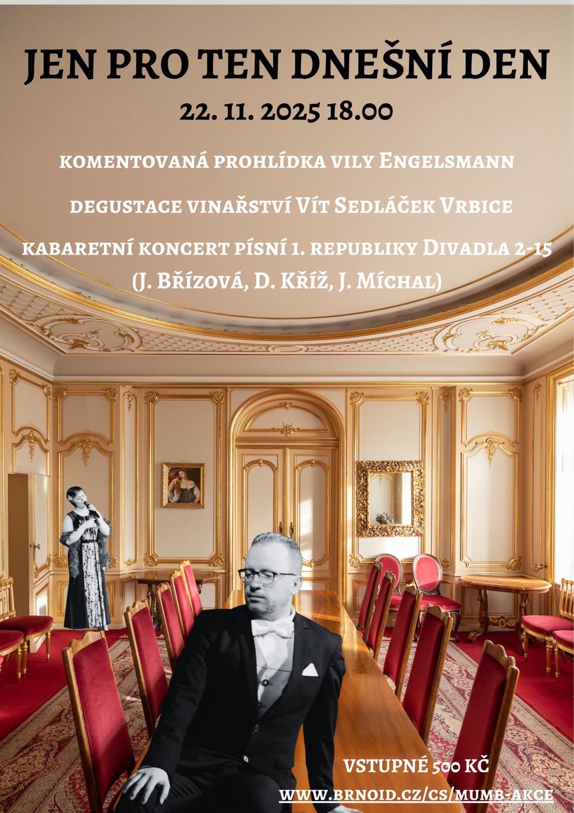 Komentovaná prohlídka Vily Engelsmann, ochutnávka vín a kabaretní koncert písní 1. republiky.