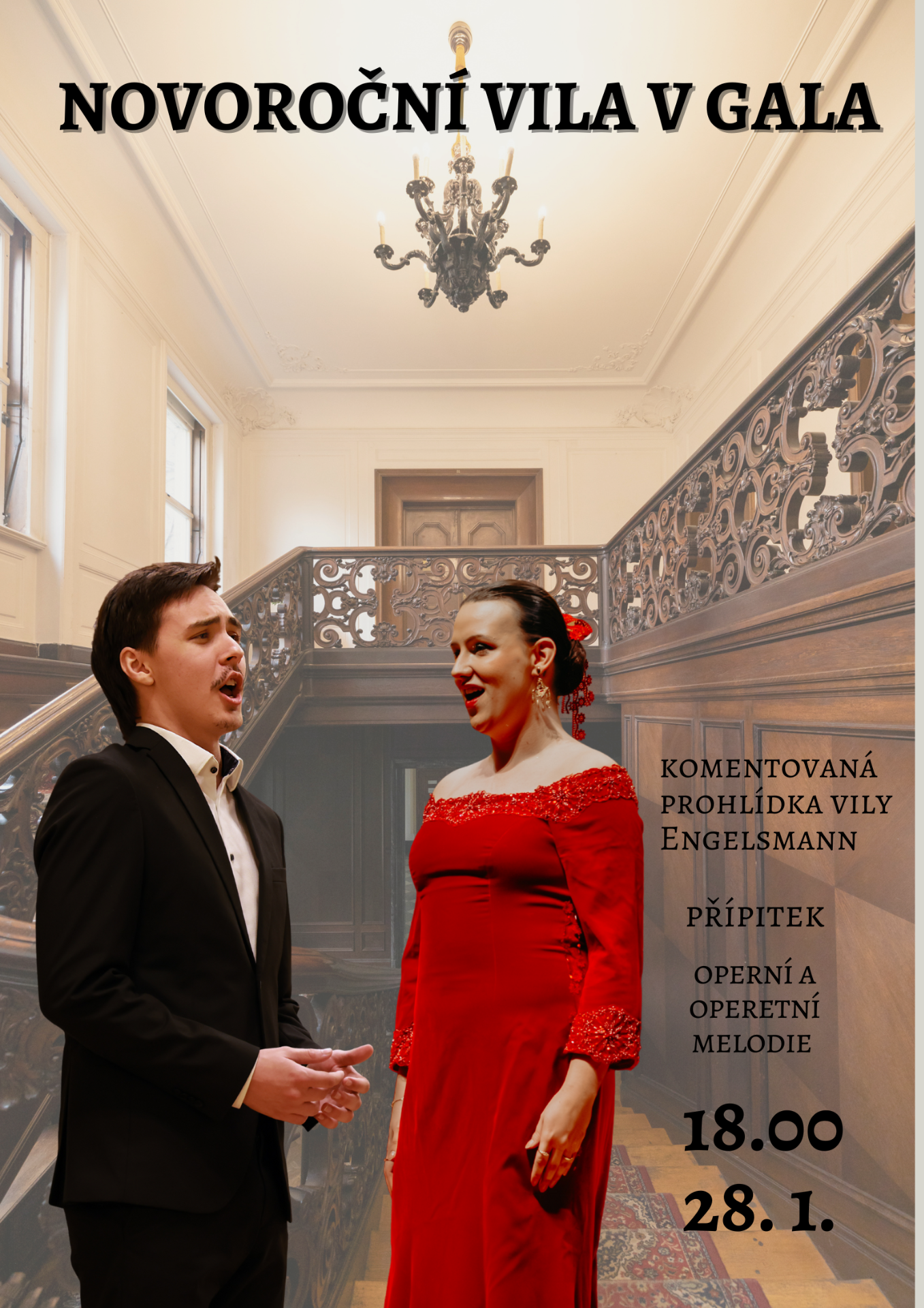 Zažijte novoroční slavnostní večer v jedinečné prvorepublikové vile: komentovanou prohlídku vily Engelsmann doplní přípitek a slavnostní koncert známých operních a operetních melodií v podání talentovaných mladých pěvců Divadla 2-15.